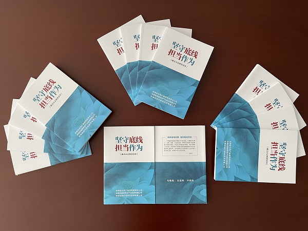 在這樣的工作節(jié)點(diǎn)編印發(fā)放廉潔從業(yè)教育讀本,意在引導(dǎo)和教育全體黨員、干部職工知敬畏、存戒懼、守底線,在安徽省生態(tài)環(huán)境產(chǎn)業(yè)集團(tuán)高質(zhì)量發(fā)展和安徽鹽業(yè)地產(chǎn)集團(tuán)、安徽省健康養(yǎng)老投資公司、安徽省城市更新投資公司高質(zhì)量發(fā)展進(jìn)程中堅(jiān)守底線、擔(dān)當(dāng)作為。